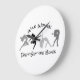 Wild Women Don't Get the Blues. "Wild Woman" is written in a black, fun typeface font above an image of four women dancing. Beneath the illustration is "Don't Get the Blues" - this clock is available in a smaller size as well as a square shape, but if you choose one of those other shapes, be sure to preview it before ordering to make sure you like the change.