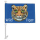 Wild young tiger face and calligraphy on blue. Text can be personalized.