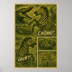 This intense retro comic-style illustration captures a dramatic jungle scene where a zebra narrowly escapes the deadly jaws of a crocodile amidst lurking hippos. With bold visuals and striking text like "CHOMP!" and "CROSS AT YOUR OWN RISK," this design evokes the peril and chaos of the wild. The vintage color palette and hand-drawn look give it a nostalgic yet thrilling appeal for fans of wildlife, safari themes, or retro adventure art. Ideal for animal lovers, comic art collectors, and those drawn to dramatic nature illustrations.