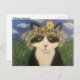 Tuxedo cat with a wreath of twigs and flowers celebrating spring