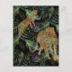 Trendy hand drawn leopards hunting in the jungle. Leafy ferns and wild cats.