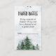 Wilderness themed boy's baby shower diaper raffle enclosure card featuring some pine trees, birds and a decorative font heading with a heart. Great for an adventure begins, winter or wildness themed boy's baby shower.