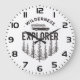 Keep track of time while dreaming of your next getaway with this wilderness explorer wall clock. The face of the clock features a beautiful vintage illustration of a station wagon and canoe among the pines, bringing a rustic woodland vibe to your home or office. It is a perfect decorative piece for a cabin, nursery, or workspace for anyone who loves nature and retro aesthetics. This functional art piece serves as a daily reminder to get outside and explore, making it a thoughtful gift for campers and adventure seekers.