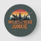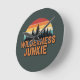 This design conveys a clear message of passion for the outdoors and nature. The phrase "Wilderness Junkie" humorously expresses an intense love or addiction to spending time in wild, untamed environments.