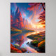 A river gracefully winds its way through a mysterious wilderness, adorned with stunning flora. The untamed beauty of nature captivates the senses, as vibrant colors paint the landscape. In the backdrop, the sky is ablaze with a beautiful sunset, casting a warm and enchanting glow over this magical scene.