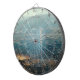 A dartboard featuring a photo of the smoldering remains of a wildfire.