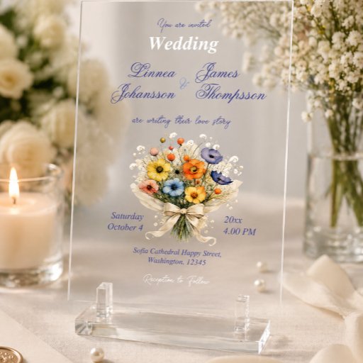 Designed to capture the beauty of wildflower arrangements, this invitation blends organic charm with refined typography, allowing your names and event details to stand out clearly. The floral bouquet evokes a meadow in bloom, making it ideal for spring and summer celebrations.