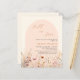 An elegant Fall in Love Bridal Shower invitation. A cream, beige colored background and a peach colored arch. Decorated with watercolored wildflowers in beige, pink.