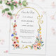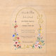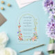 Graceful gold arch border with elegant scrolls embellished with romantic boho chic watercolor pastel wildflowers in pale blue, pink and yellow on clear acylic. This charming collection is the perfect complement to your Spring, Summer or garden-themed wedding.