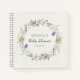 Wildflower baby shower guest book featuring a delicate botanical wreath design. Perfect for baby shower celebrations, this guest book provides a beautiful place for guests to leave wishes, notes, and memories.