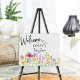 Pretty Wildflower baby shower welcome sign which you can personalize with the name of the mom-to-be. The design features a pretty watercolor border of wildflowers in pink orange and yellow. Welcome and Baby Shower are hand lettered with casual elegance. Please browse my store for coordinating signs for your gift and favor tables.