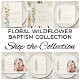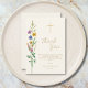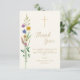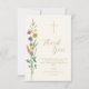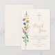 This floral Baptism thank you card features wildflowers and a cross on a soft cream background.