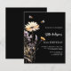 A black background. Decorated with bees and painted wildflowers in violet and pink. Personalize and add a name and party details. White text. 1 sheet = 1 invitation printed edge to edge.