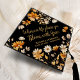 Introducing our stunning graduation cap topper adorned with a beautiful display of wildflowers in shades of cream, orange, terracotta, and beige set against a striking black background. This boho-inspired design is perfect for graduates looking to add a touch of elegance and inspiration to their commencement attire. Featuring the motivational quote, "Wherever Life Plants You, Bloom With Grace," this modern topper speaks to the journey and growth experienced throughout high school, college, or university.