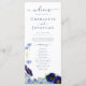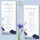 Chic bohemian wedding program includes ceremony details and the wedding bridal party with easy to personalize templates perfect for a spring meadow, summer garden wedding. Beautiful unique hand painted watercolor wildflowers and foliage in blush blue, cornflower blue, navy, purple and green hues, ideal for a spring or summer day of the wedding program. Elegant modern typography script in navy blue compliments the whimsical boho stunning hand painted artwork which includes cornflowers, poppy, cosmos, forget me nots and delicate foliage. Original artwork by artist Catherine Sweetman