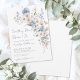 The design features a burst of watercolor florals positioned to the right, showcasing a beautiful mix of dusty blue, beige, and white flowers. Soft sage green leaves add a gentle, earthy accent that keeps the look calm, elegant, and inviting.