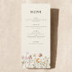 The Wildflower Boho Elegant Wedding Reception Menu offers a refined yet nature-inspired design, perfect for couples seeking a romantic, bohemian ambiance for their wedding celebration. Featuring delicate wildflower illustrations in soft, earthy tones, this menu adds a touch of elegance to any table setting. The customizable layout provides space to highlight your curated menu selections, ensuring guests enjoy both the aesthetic and the dining experience. A timeless addition to your boho-inspired wedding theme.