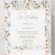 Introducing our minimalist and trendy wedding invitation, featuring a pretty wild flowers in boho colour and green leaves and more, with an elegant background , creating a clean and stylish look for your special day.