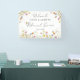 Welcome your rehearsal dinner guests with this beautiful wildflower banner. Colorful flowers decorate the bottom and corners while "Welcome" is written at the top in a lovely script. The couple's names along with the rehearsal date can be easily customized. It makes a great photo backdrop for the rehearsal dinner and a keepsake for the newlyweds.