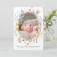 This elegant girl photo birth announcement card features a white background with wildflowers and butterflies. The reverse side features your photos and message. Personalize it for your needs. You can find matching products at my store.