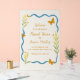 Welcome your guests with this cheerful butterfly garden wedding sign, designed to match our summer suite. Adorned with hand-drawn wildflowers, fluttering orange butterflies, and a wavy blue border, this sign sets the tone for a joyful, nature-inspired celebration. Ideal for outdoor ceremonies, botanical garden venues, or whimsical spring and summer weddings. Easily personalize with your names, wedding date, and location. Style it on an easel for an inviting entrance or display it near the guestbook or ceremony path.