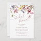 Modern calligraphy and mauve wildflower bridal shower invitation.