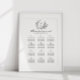 Classic black and white wildflower crest and monogram wedding seating chart poster.