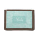 Wildflower damask patterned aqua teal name tri-fold wallet