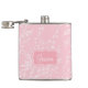 Subtle pretty wildflower damask designed flask in soft light pink hues. Cute patterned id hip flask featuring unique damask pattern and design by Sarah Trett. Customize with the name of your choice, currently reads Jessica.