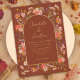 Wildflower arch burnt orange terracotta and gold foil fall wedding invitation. This enchanting boho wedding invitation is a stunning blend of autumnal warmth and whimsical charm. Featuring hand-painted, watercolor wildflowers in a delightful wreath design, the invitation showcases a rich color palette of burnt orange, brown, yellow, green, terracotta, coral, purple, and pink. The earthy tones create a perfect harmony, making it an ideal choice for a fall wedding. The elegant gold foil accents bring a touch of sophistication, while the whimsical script in gold foil adds a personal, bohemian flair to all your essential wedding details. Designed by the talented artist Catherine Sweetman, this unique invitation embodies the spirit of a cozy, intimate celebration in the heart of autumn. With easy-to-personalize templates, it offers a seamless way to convey your wedding information with style and artistry. The background in a burnt Orange terracotta adding a natural warmth, bringing the beautiful florals to life in a way that feels both fresh and timeless.