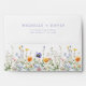 This design features a colorful border of watercolor wildflowers in shades of purple, gold, green, and blue.