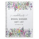 Lovely watercolor wildflowers top this bridal shower notebook where you can write what you get as a gift. Super useful to have everything in one place for when you write out your thank you notes. The flowers are hand drawn and they have that meadow look to them that everyone loves. Faux watercolor paper texture really makes them pop. Pretty typography adds to the beautiful style. See our coordinating items including thank you cards as well.