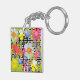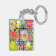 Wildflower Floral Garden on Geometric Pattern Keychain