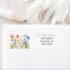 This personalized return address label features delicate watercolor wildflowers in soft pink, blue, yellow, and purple tones along the bottom, paired with an elegant script name across the clean white surface. Beautiful and practical, it’s perfect for school or office.