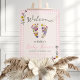 Personalize this darling floral pink Floral Footprints baby shower Welcome Sign for the arrival of a sweet baby girl, featuring colorful pressed wildflowers in the shape of little footprints soft pink gingham pattern and pink script typography. It's the perfect cheerful entrance welcome sign for your baby shower guests in any season! Easily add your baby shower wording and make it your own. Custom design requests, additional collection product requests, or template questions (with a quick response) are always welcome - click the "message" button, or email direct: contact@figandlilyco.com. Design lovingly created by Fig and Lily Studios ♥