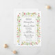 Gorgeous watercolor wedding invitation framed by a delicate arrangement of colorful wildflowers.
