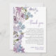 Wildflower Graduation Thank You Card. Express your gratitude for your high school or college graduation with this elegant, modern rustic thank you card featuring delicate watercolor lilacs in soft purples, lavender roses, and blue wildflowers with lush greenery, and space for three personalized photos on the back. Designed for spring and summer graduations, customize the wording, font styles, colors, and sizes to create a heartfelt note that leaves a lasting impression.