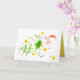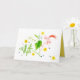 An original watercolor painting of Upper Peninsula of Michigan June wildflowers, dandelions, forget-me-nots, ferns, apple blossoms, and white lilacs. printed on a greeting card, artist Kristina Anderson