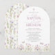 Wildflower Holy Baptism & 1st Birthday Pink Script Invitation
