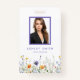 This design features a watercolor border of wildflowers in bold shades of purple, green, orange, and gold. Personalize with your name and business information.