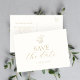 Elegant, fresh and modern. This beautiful and stylish save the date postcard features a whimsical line drawn floral bouquet and a contemporary set of fonts in faux gold, against a light ivory background. The back includes additional text and repeat floral detail in postcard format.