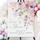 Welcome guests to your bridal shower with this whimsical and romantic welcome sign, perfect for a "Love Is In Bloom" themed celebration. The design features a soft and delicate arrangement of watercolor wildflowers and greenery in a color palette of blush pinks, dusty rose, lilac, lavender, violet, and fresh greens for a dreamy, garden-inspired look.