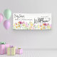 Wildflower baby shower banner with pretty watercolor wildflower meadow border and beautiful hand lettering. The design features delicate flowers in pink, lilac, orange and yellow and popular saying "do you suppose she's a wildflower?". The template is ready for you to personalize with the name of your mom to be.