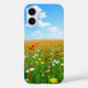 A vast meadow bursting with colorful wildflowers like poppies, cornflowers, daisies, and buttercups, beneath a bright blue sky with soft clouds. This vibrant spring scene brings freshness and joy, perfect for lively phone case designs.