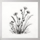 Embrace simple natural beauty with this delicate black ink illustration! Graceful daisies bloom atop slender stems, surrounded by swaying wild grasses, feathery seed heads, and tiny clustered blossoms. The clean, minimalist linework captures the gentle sway of a summer meadow, evoking peaceful countryside charm, serenity, and timeless botanical elegance.