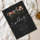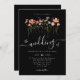 The modern crisp white typography adds a crisp, sophisticated touch, while the whimsical florals bring a warm, personal, and romantic bohemian feel. Perfect for a stylish black tie black and white wedding, fall wedding, rustic barn wedding, garden wedding, or outdoor celebration, this invitation blends natural charm with timeless elegance.