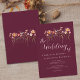 Delicate wildflowers bloom across a rich burgundy red wine background in a rich fall palette of burnt orange, terracotta, brown, coral, golden yellow, peach, purple, soft pink, and burnt umber, capturing the natural beauty and warmth of the season. Warm blush pink elegant script and modern typography adds a modern touch, while the florals bring a whimsical, personal feel.