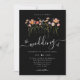 Boho Fall Wildflower Meadow Wedding black and white Invitation with RSVP wedding website QR code, a stunning blend of autumnal charm and elegant sophistication. This watercolor design showcases hand-painted wildflowers in a vibrant garden meadow, with a rich palette of burnt orange, terracotta, brown, purple, yellow, coral, burnt umber, peach, and soft pink, capturing the warmth and beauty of the fall season on a sleek black background.