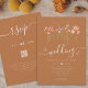 Boho Fall Wildflower Meadow Wedding brown sugar and beige Invitation with RSVP wedding website QR code, a stunning blend of autumnal charm and elegant sophistication. This watercolor design showcases hand-painted wildflowers in a vibrant garden meadow, with a rich palette of burnt orange, terracotta, brown, purple, yellow, coral, burnt umber, peach, and soft pink, capturing the warmth and beauty of the fall season on an earthy brown sugar background.