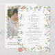 Celebrate your love story with this elegant wildflower wedding invitation featuring a romantic watercolor floral border and a customizable photo on the back. Soft blush, blue, and yellow blooms frame the front design, creating a timeless garden-inspired look that feels both refined and fresh. Classic serif typography paired with graceful script adds sophistication and balance to your wedding details.
